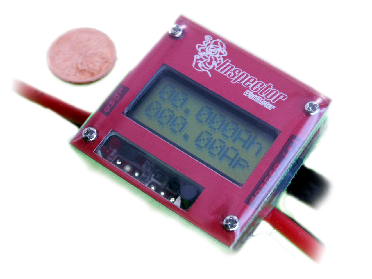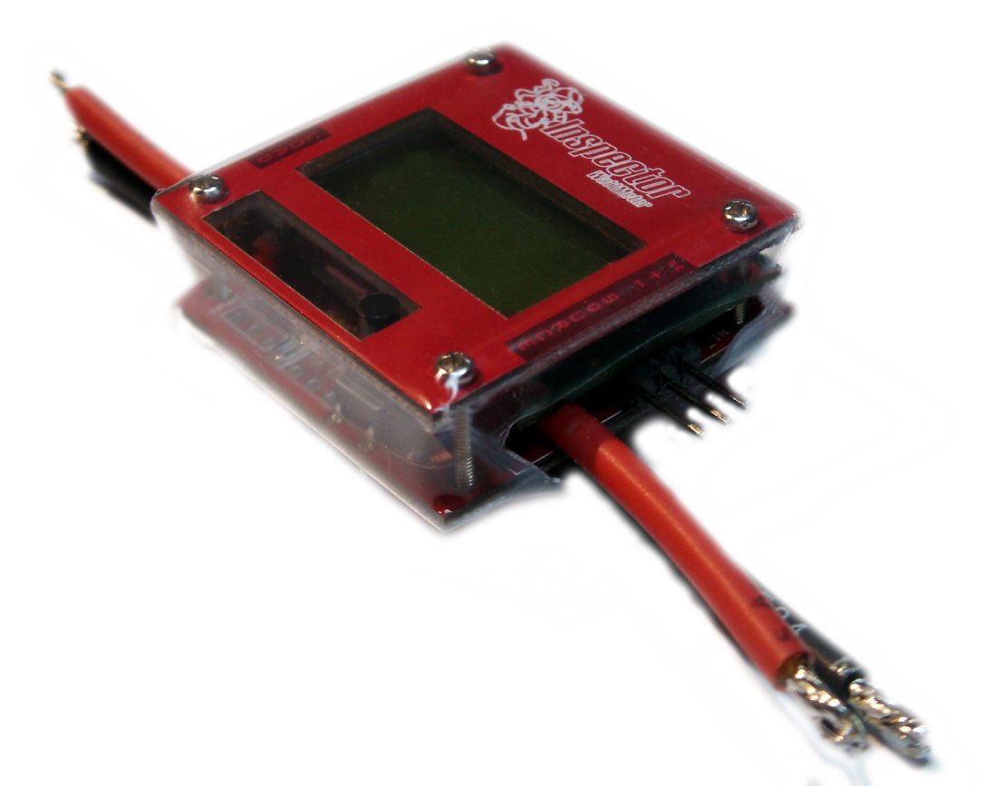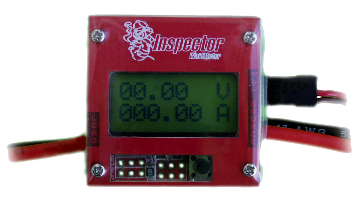 The Inspector Wattmeter is an easy-to-use precision instrument for measuring and calculating the electrical parameter of any radio control model. These parameters would be used to optimize your electric model to its top performance. The Inspector Wattmeter measures real-time current, voltage, peak current, minimum voltage, power, charge and energy for the electric model that it's connected to. This will allow you to investigate and tune the performance of your R/C model to its optimal performance. You can also determine critical things such as efficiency, and current consumption of an ESC, BEC and motor, power consumption/lost at all conditions. These precise measurements and data will help you fine tune your R/C model to get the proper performance and data will help you fine tune your R/C model to get the proper performance and provide a safe and consistent power source. The Wattmeter is also ideal for tracking the current and power consumption during the charging/discharging of any rechargeable batteries in series with a battery charger. The Inspector Wattmeter is designed and manufactured in Canada with the leading edge micro-controller technology and robust components that will "inspect" most high power applications.